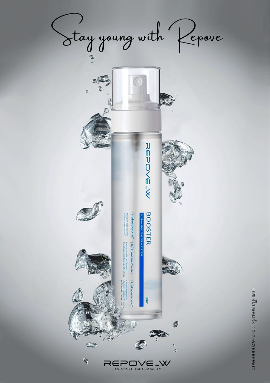 REPOVE W BOOSTER is a multi-functioning cosmetic with ingredients from nature such as Cypress and Rigida Pine trees extracts that brighten and moisturize the skin.